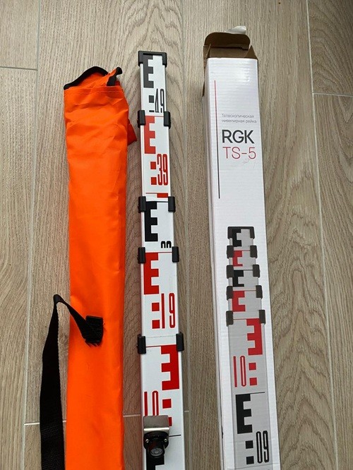 Нивелирная рейка RGK TS-5 — это полезный инструмент для строительства и геодезии. Она сделана из алюминия, высотой 5 метров и легко складывается. Рейку удобно брать с собой в багажнике машины или в рюкзаке.